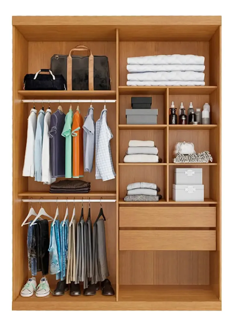 Feito com materiais de alta qualidade, este móvel é resistente e durável, garantindo que você tenha um guarda-roupa confiável por muitos anos. As 2 portas e 2 gavetas oferecem amplo espaço para armazenar suas roupas, calçados, e o que mais você precisar. E o espelho é ótimo para dar aquela conferida no visual antes de sair para arrasar por aí! E não é só isso! Este guarda-roupa é também uma peça de destaque em qualquer ambiente, graças ao seu design elegante e acabamento impecável.